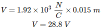 01․ An electric field of 1.92 × 103 N/C is maintained across two plates separated by 0.015 m. Potential difference across plates will be
