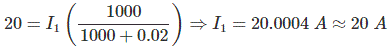 Let the actual voltage and current are I1 and V1 respectively then current in CC is 20 A.