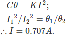 ⇒ I2 = 4.47 A.06․ A meter has a full-scale deflection of 90o at a current of 1 A. The response of the meter is square law. Assuming spring control, the current for a deflection at 45o will be