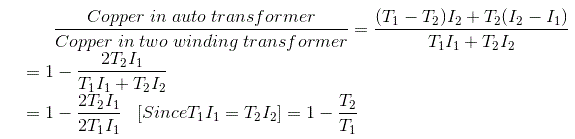To quantify the saving the total quantity of copper used in an auto transformer is expressed as a fraction of that used in a two winding transformer as,