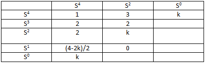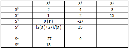 We observe that the sign of the first column changes twice, so the number of roots on the right hand side of S plane = 2.