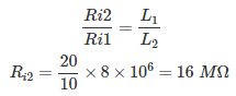 07․ The insulation resistance of the 20 km long underground cable is 8 MΩ. Other things being same, the insulation resistance of 10 km long cable will be