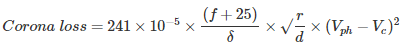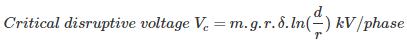 The voltage at which corona is just initiated is called critical disruptive voltage(Vc). At this critical disruptive voltage, corona is not visible but noise can be heard.