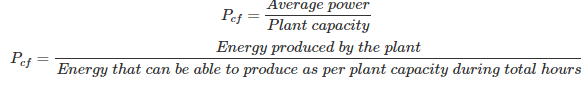 Plant capacity factor (Pcf) is defined as the ratio of average power to the plant capacity.