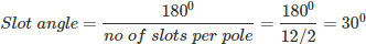 10․ A 3-phase, 2 pole, 12 slot synchronous machine is operating at synchronous speed. Find the slot angle?
