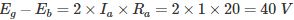 10․ A 220 V DC machine has an armature resistance 1 Ω. If the full load current is 20 A, the difference of induced voltage between generator and motor is