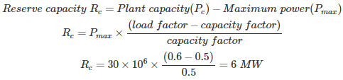 04․ A generated station has a maximum demand of 30 MW, a load factor of 60% and a plant capacity factor of 50%. The reserve capacity of the plant is