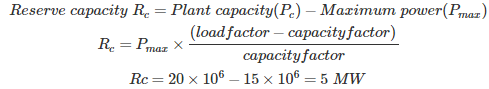 03․ A power station has a maximum demand of 15 MW. The plant capacity is 20 MW. Find the reserve capacity of the plant?