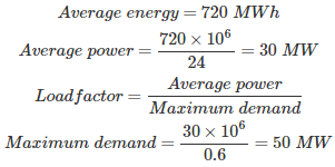 02․ The daily energy produced in thermal power station is 720 MWh at a load factor of 0.6. What is the maximum demand of the station?