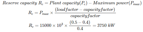 01․ A power station has a maximum demand of 15000 kW. The annual load factor is 50% and plant capacity factor is 40%. What is the reserve capacity of the plant?
