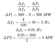 03․ A 200 MW capacity generator has a speed regulation of 4% for a frequency drop of 0.05 Hz. Find the power input supplied by the turbine for maintaining constant frequency?