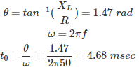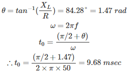 The time at which maximum value of negative DC off set current produced is t0, when it is applied with Vm sinωt.