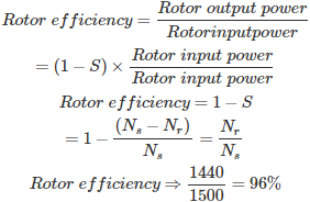 07․ A 3-phase, 50 Hz, 4 pole induction motor is running at 1440 rpm. Find the rotor efficiency?