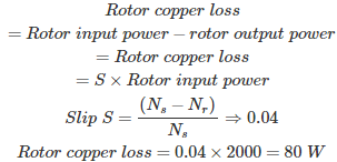 05․ A 3-phase, 50 Hz, 4 pole induction motor is running at 1440 rpm and rotor input power is 2KW. Find the rotor copper loss?