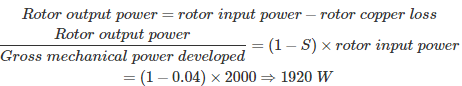 06․ A 3-phase, 50Hz, 4 pole induction motor is running at 1440 rpm and rotor input power is 2KW. Find the rotor output power?