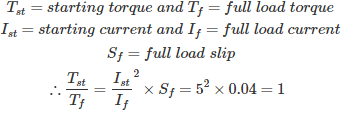 04․ An induction motor has a full load slip of 0.04. Its starting current is 5 times its full load current. what is the ratio of starting torque to the full load torque?