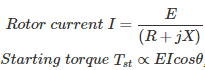 The outer cage has high resistance and low reactance while the inner cage has low resistance and high reactance. Therefore at starting, the current is mainly confined to the outer cage with a consequent decrease in starting current and an increase in starting torque. By increasing the starting resistance, the starting torque is increased and by increasing starting reactance running torque is improved.