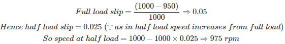 01․ If the full load speed of 3-phase, 50Hz induction motor is 950 rpm, what is its half load speed nearly equals to?