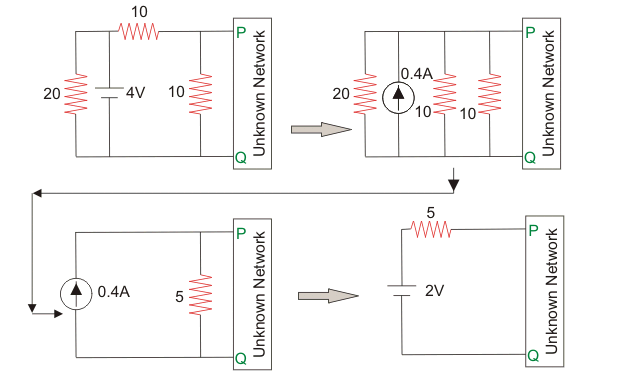 Hence the Thevenins equivalent voltage is 2 V and impedance is 5 Ω.06․ For the network shown below when I = 0, V = 20 V and when R = 0, I = 10 A. If now R = 3 Ω what is the value of the current I?