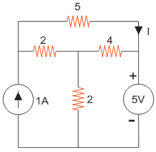 03․ Consider the following circuit. What is the value of current I in the 5 Ω resistor in the circuit given in the figure?