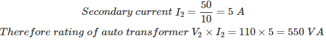 06․ A 100/10, 50 VA double winding transformer is converted to 100/110 V auto transformer. The rating of auto transformer is