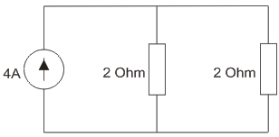 06․ The Norton equivalent of a network is given as IN = 4A and RN = 2 Ohm. When this circuit is connected across a 2 Ohm load, the current through the load is