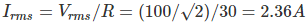 10․ A voltage of v = 100 sin (wt + π/3) is applied to pure resistor of 30 Ohm. What is the RMS value of current is