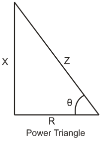 The below figure represents the power triangle. The perpendicular (X) represents the reactive power (or reactive impedance), base (R) represents active power (or resistance) and hypotenuse (Z) represents apparent power (or impedance).