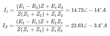 Hence I = I1 + I2 = 37.2 ∠ -7.3°