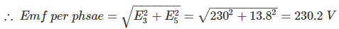 [math] herefore Emf \; per \; phsae = \sqrt{E_3^2 + E_5^2} = \sqrt{230^2 + 13.8^1} = 230.2 \; V [/math].